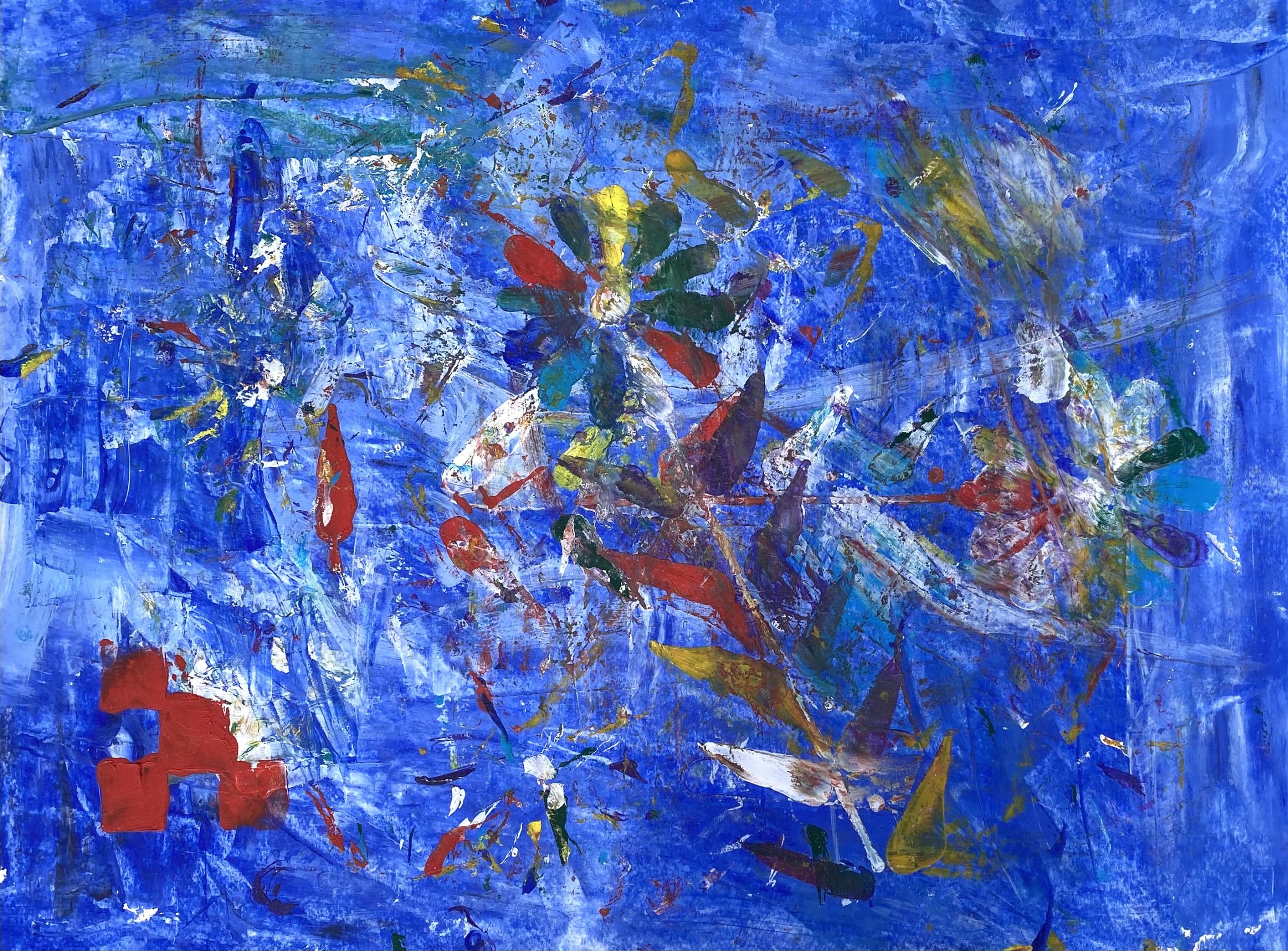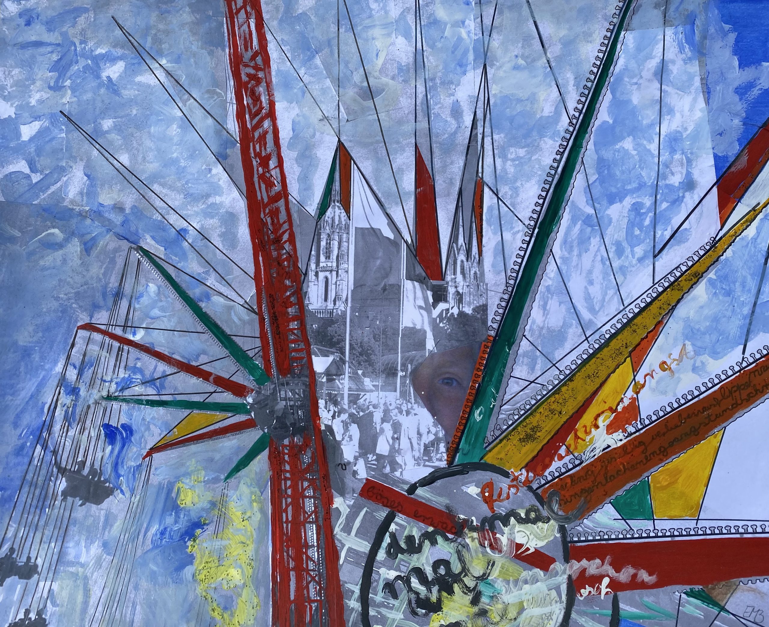 Mischtechnik, Acryl, Dispersion, Pastellkreide, Gips, Sand, Beton, Stoff, Fundstücke
